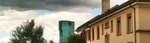 Black and white clouds and a skyscraper
